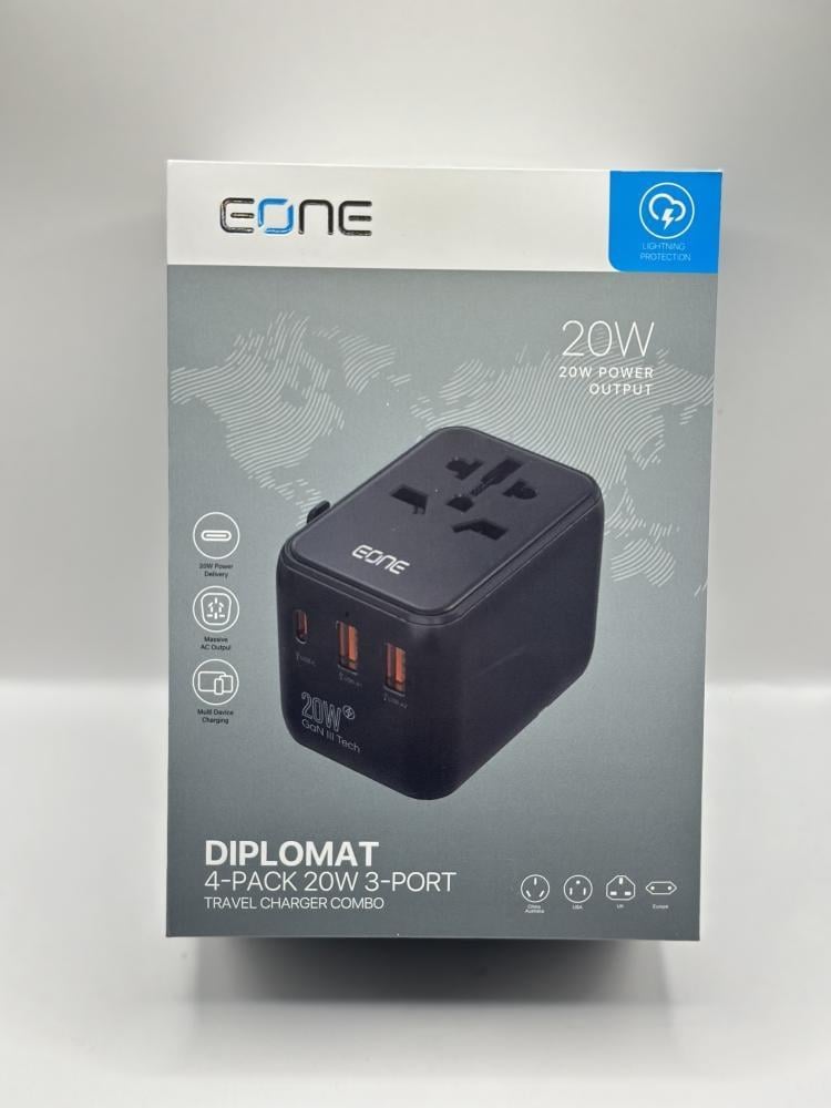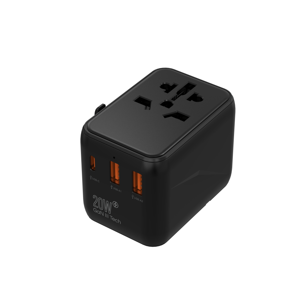 اي ون شاحن جداري متعدد الرؤوس للسفر 20 واط - اسود